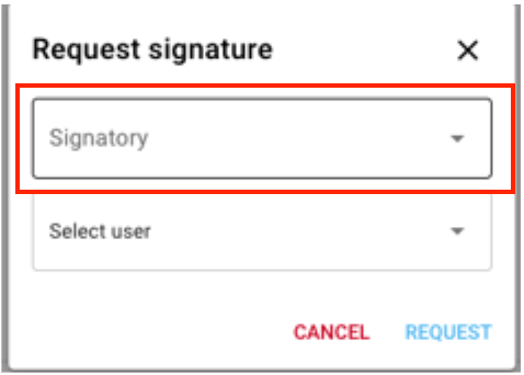 - If the user doesn't have an account you can select a field from [Signatory] and it will still generate a signature request that can be manually signed.