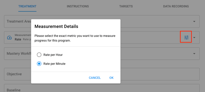 Frequency-based programs will keep track of both prompt counts and duration when collecting data and automatically chart data by frequency (count) and rate over time.