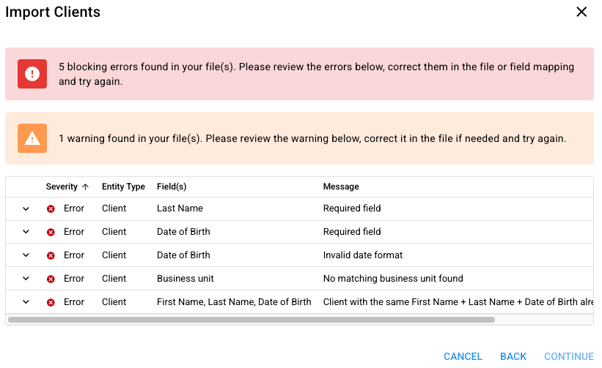 - Once all errors have been resolved, press [import clients]