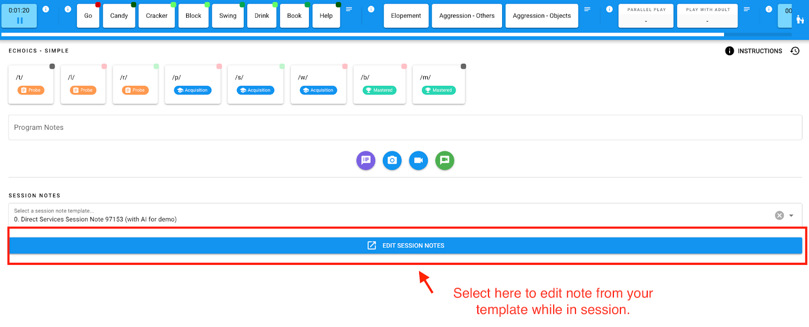 Tired of waiting for the end of your session to write your session notes? Do your RBTs find themselves jotting down notes in a separate space to refer back to at the end of the session? You can now get to work on your session notes during a session.