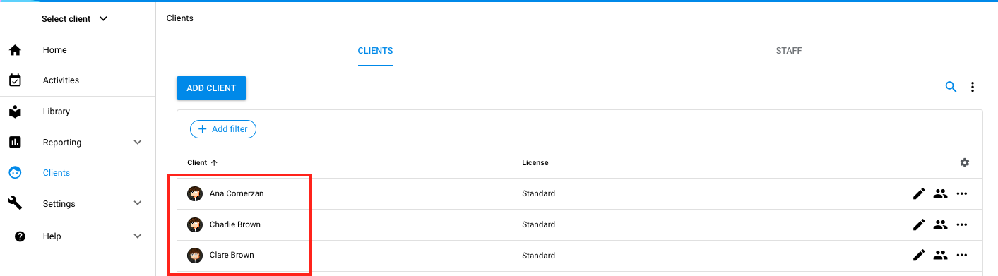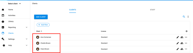 Your client's from Camber will now have active profiles created on Hi Rasmus and will be displayed in a list format