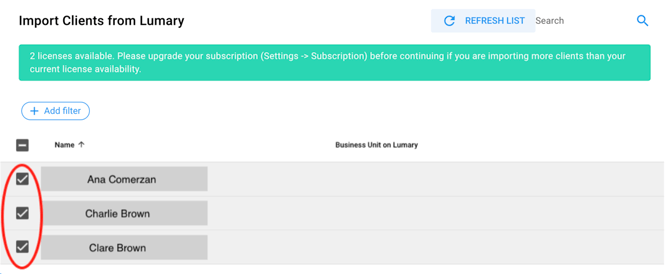 Before you import your clients into Hi Rasmus from Camber, verify that the subscription number of active license is correct.