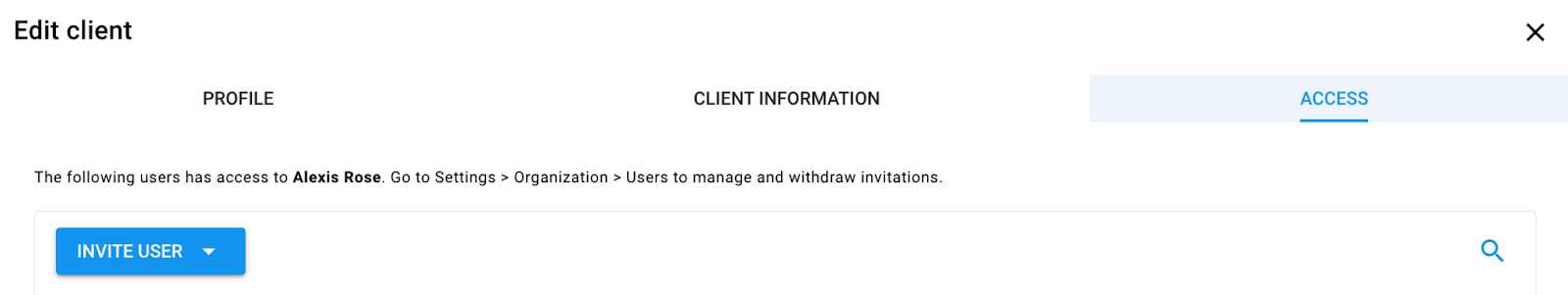 - On the [Access] tab you can select which users should have access to work with this Client and view their home page. Click [Save]. Manager-level users have access to all clients.