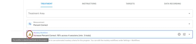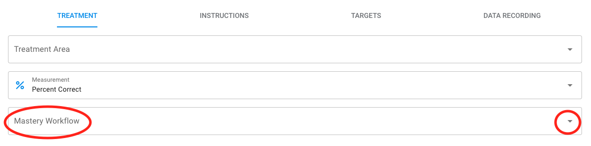 To do so, when creating a program, under the [Treatment] tab, after selecting the [Measurement], select [Mastery Workflow], by clicking on the arrow on the right side.