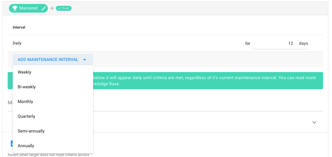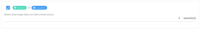 - Additionally, there is an option to Revert a target's status from Mastered to Acquisition when the target does not meet criteria. Enable this and determine the number of sessions for this to occur.