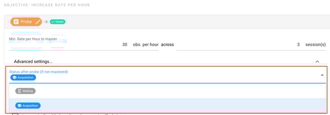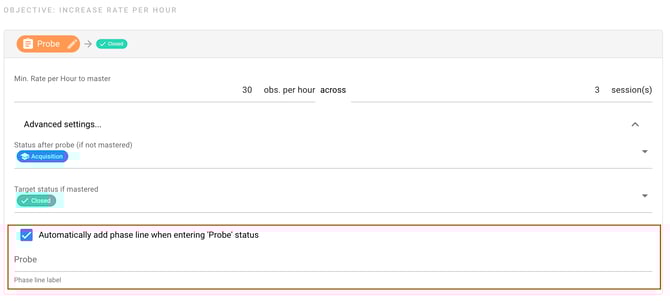 - For the [Probe] section, add the rate per hour or minute across the number of sessions in order to consider the target mastered.