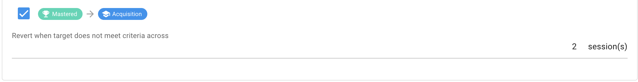 You have the option to establish a minimum success rate across a specified number of sessions. If this minimum is not met, then the target will move back to the acquisition phase.