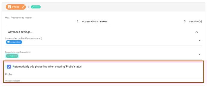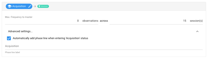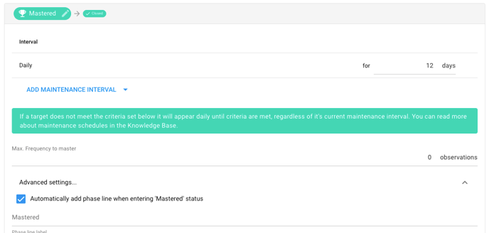 - Select [Advanced settings...] to automatically add a phase change line when a target automatically moves into [Mastered]. The default name will be Mastered, but you can change it if necessary.