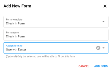 NOTE: You do not have to assign the form to a particular user. You can assign the form to parents, caregivers, technicians, etc. If you leave the [assign form to] selection blank.