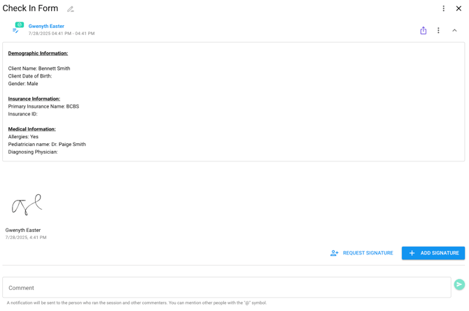 1. Once the form has been added to the learner, it will appear above the sessions on the client’s home page. Below is an example for reference: