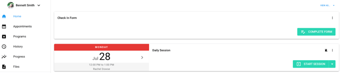 1. Once the form has been added to the learner, it will appear above the sessions on the clientโs home page. Below is an example for reference: