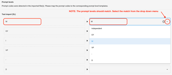 7. You will also need to map the prompt levels from the file to the prompt levels set up in the program.