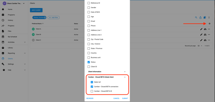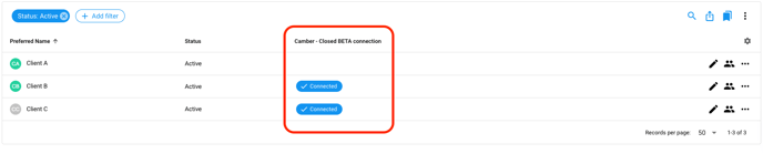 TIP: Add the Camber connection column to the client list to view if a client is connected to their Camber profile.
