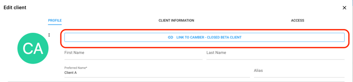 NOTE: The Camber integration must be set up to link a client or user to their profile.
