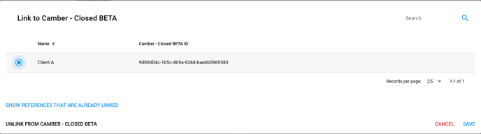 2. Click the name of the client you would like to link to Camber