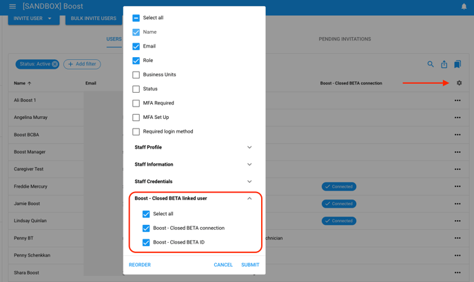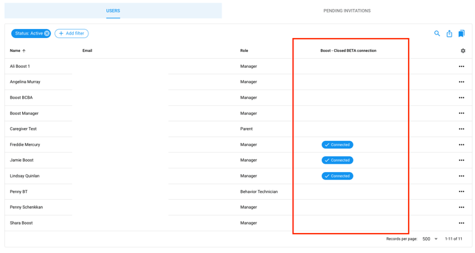 TIP: Add the Boost connection column to the user list to view if a user is connected to their Boost profile.