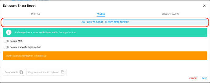 NOTE: The Boost integration must be set up to link a client or user to their profile.