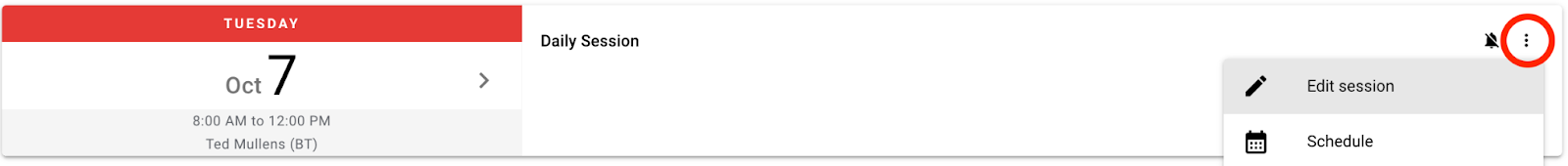 2. To edit the session click the icon in the upper right-hand corner of the session with the program you would like to pin.