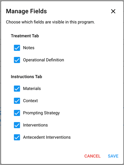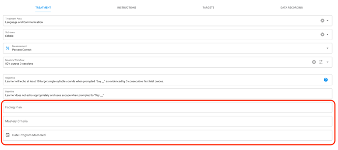 Program data fields can be used to track program specific information such as mastery criteria, a program's fading plan or specific dates associated with a program.