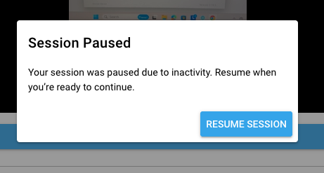 NOTE: After 15 minutes if inactivity, the session will be paused automatically. The user can choose to resume if they are actively working on the module. This ensures that the total duration of the RBT Training meets BACB standards.