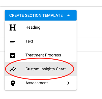 - Once Saved, your Custom Insights Chart section template becomes available in the list of Template Sections and as an option when building a Report Template.