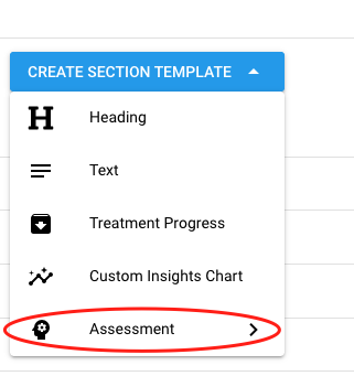 - Once Saved, your Assessment section template becomes available in the list of Template Sections and as an option when building a Report Template