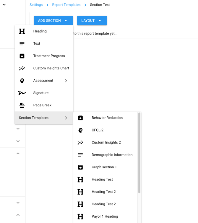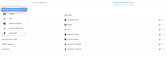 TIP: We recommend being descriptive when naming your section templates so that you easily know which section to use when building reports!