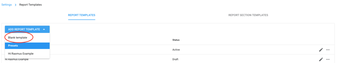 To begin creating Report Section Templates navigate to Settings-- Templates-- Reports. Select Report Section Templates.