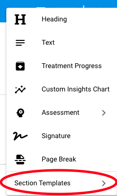 - Once saved, your Treatment Progress section template becomes available in the list of Template Sections and as an option when building a Report Template.