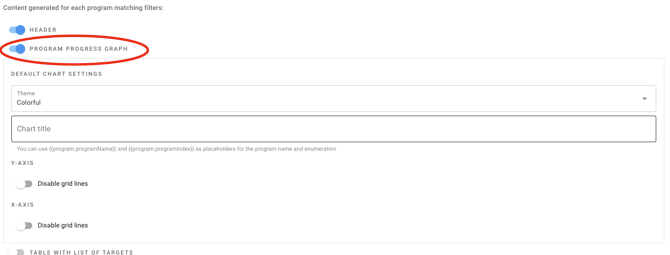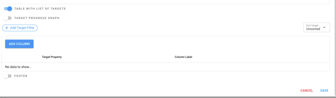 Choose settings for Table with a list of targets Target Progress Graphs and footer where applicable.