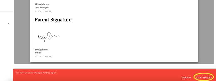 7. Press [save changes] in red so that your signature is saved to the current report