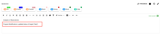 TIP: Type into the [Program modifications] pop-up, and this will automatically pull into your supervision session note (as seen below):