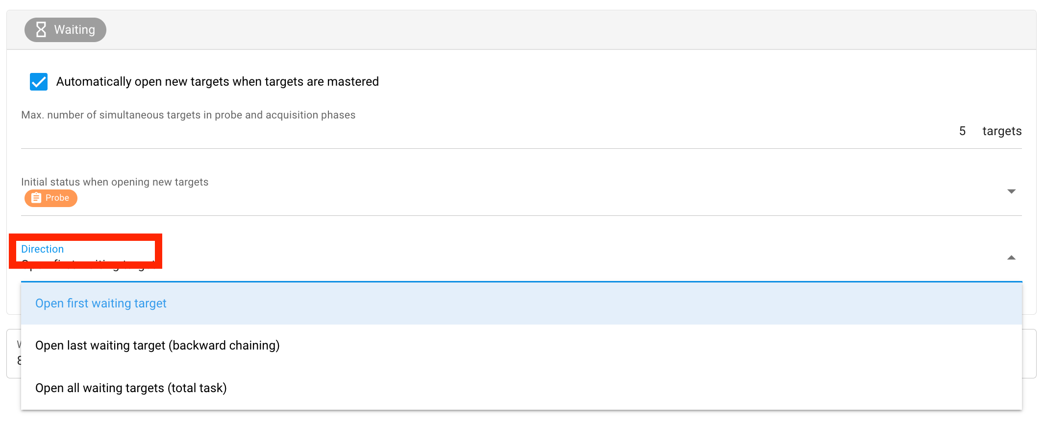 Max number of targets in probe and acquisition phases depend on your type of chain (1 if it's a forward or backwards, total # of steps if it's a total task)