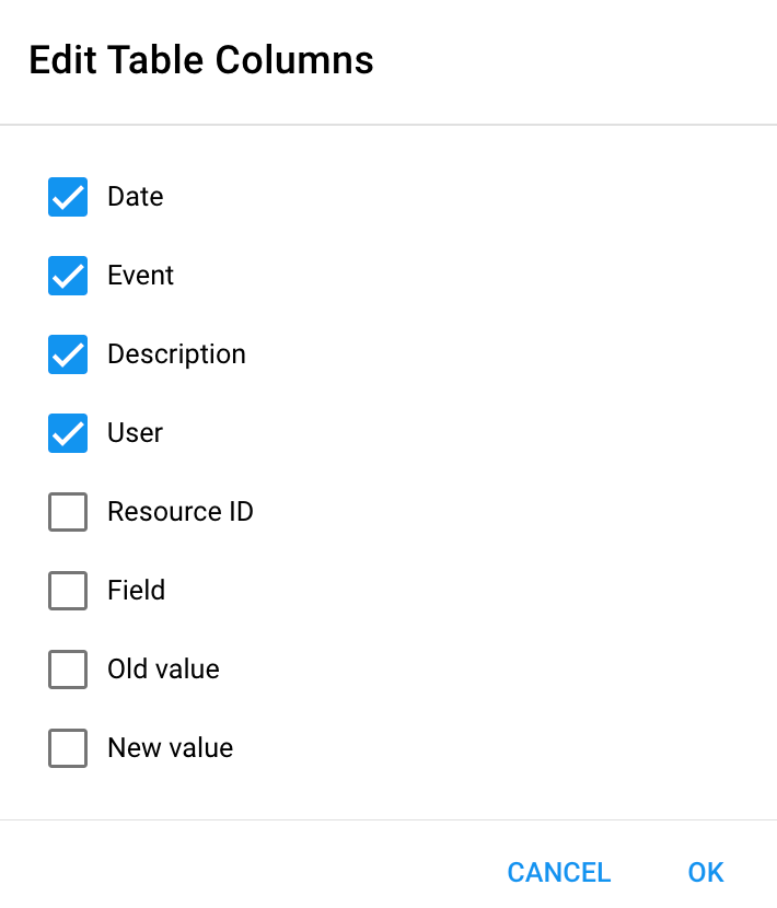 to edit the column table by selecting/ unselecting checkboxes for the columns you wish to display.