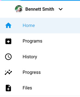 is your overview for the client you have selected. On the homepage you can see scheduled sessions and the current programs for this Client. The homepage is also where you create new sessions. - Appointments
