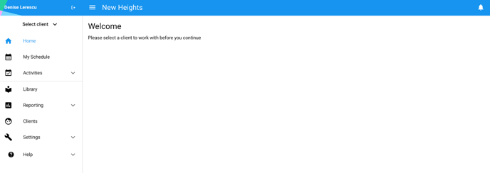 To begin working with a Client, select their name from the [Select Client] dropdown: